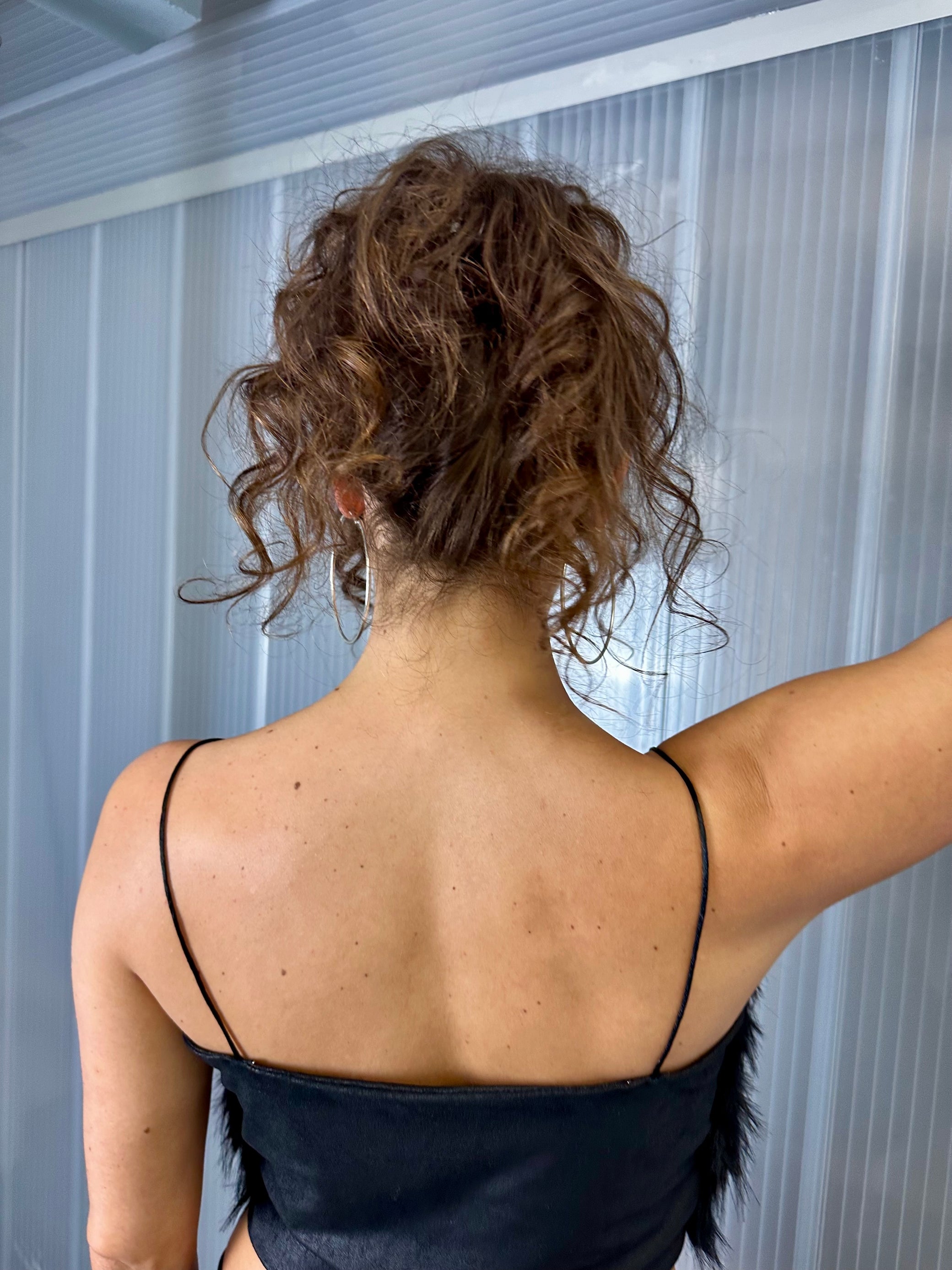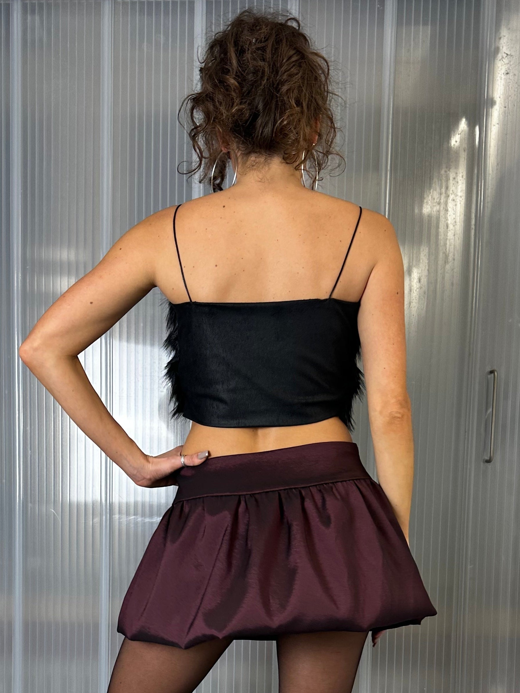 The Raven Fur Top is made for winter. Lined for warmth and crafted from black fur sourced in Berlin, it’s a bold piece that brings edge to city nights, winter walks and layered looks.